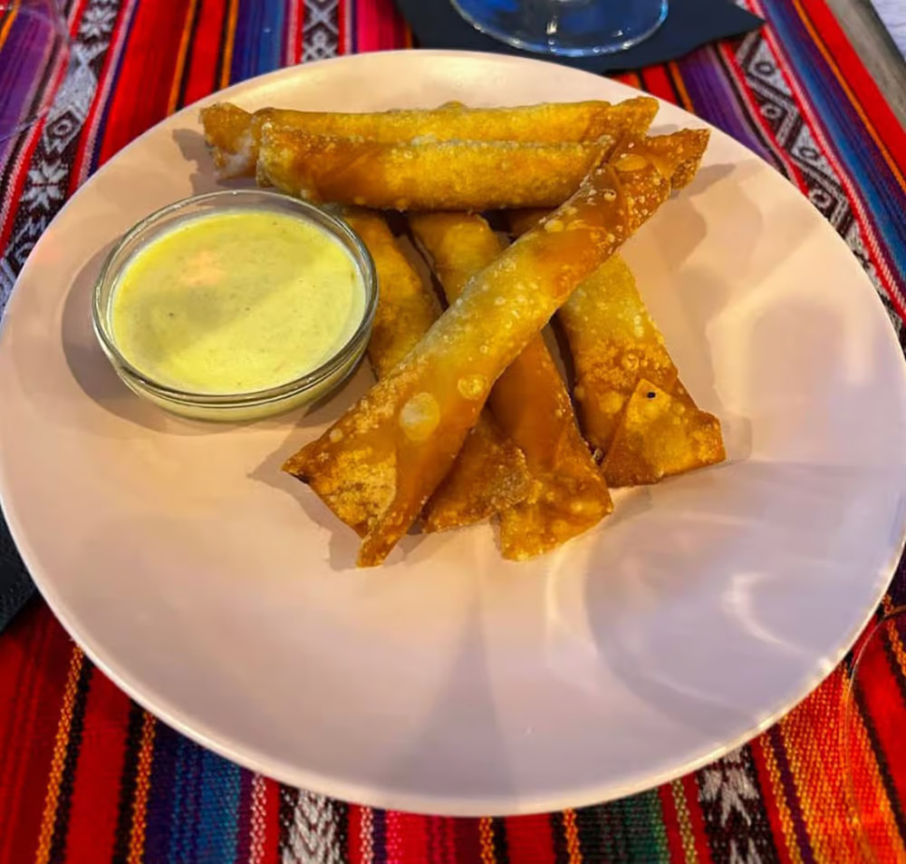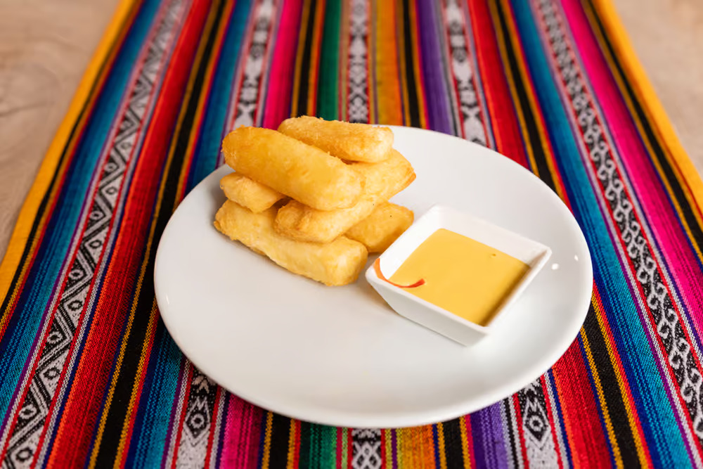 spicchi di manioca fritte con salsa huancaina (aji amarillo, formaggio,